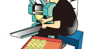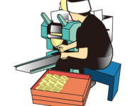 おひつ型の機械が一回分のシャリ用意してくれるからネタくっつけて人が握る