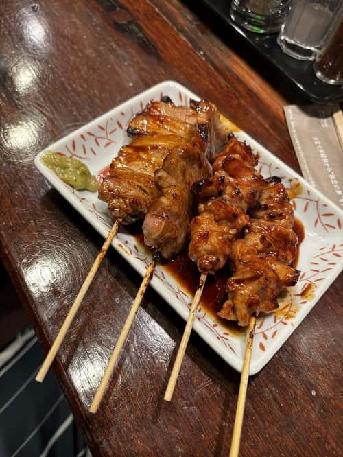 焼き鳥は熱燗も焼酎お湯割りも何でも合うで