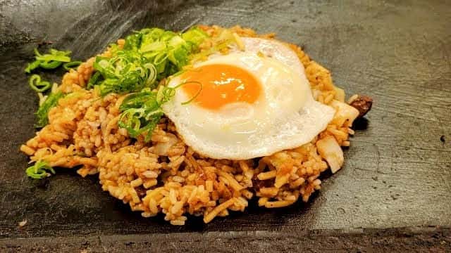 あれは米も麺も同じ鉄板の上で焼ける店限定のもんや
