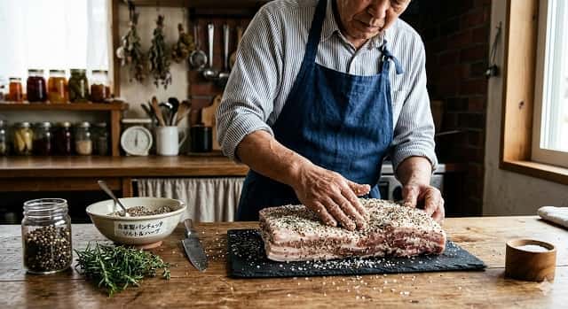 豚バラを塩とスパイスで漬け込んだ塩漬け肉