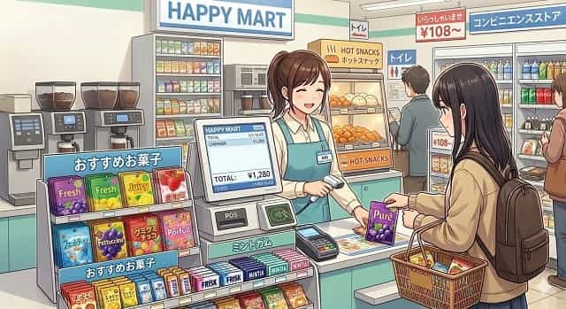 スーパーマーケットやコンビニエンスストアのレジ周りではグミのスペースが広がり続けている。