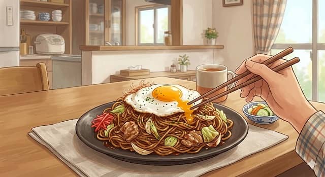 卵と焼きそばは合うからな